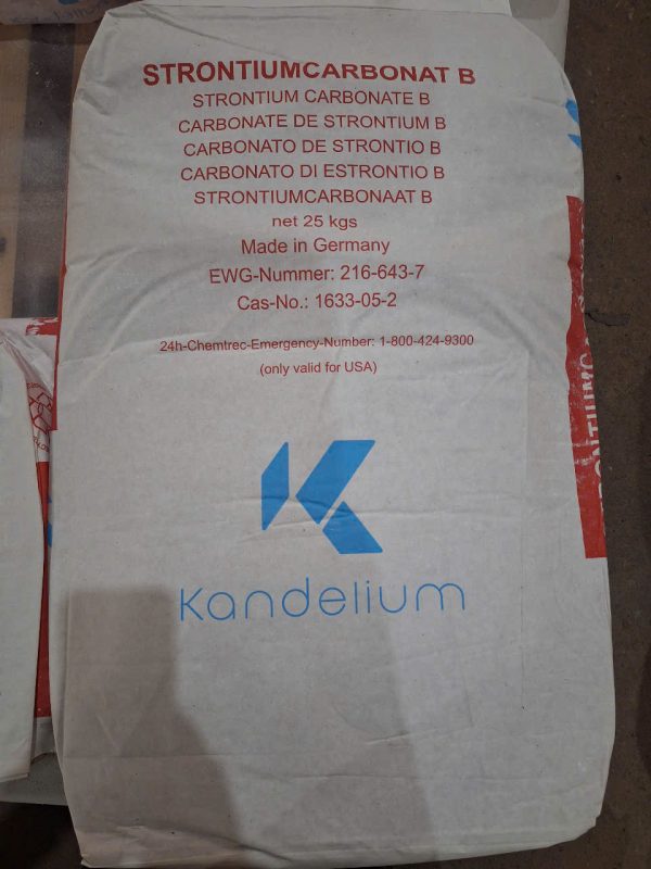 Strontium Carbonate B (bột Stronti Cacbonat B) là hợp chất vô cơ có công thức hóa học SrCO₃, được biết đến với tên gọi quốc tế Strontium Carbonate B, tên Pháp Carbonate de Strontium B, tiếng Ý Carbonato di Stronzio B, tiếng Tây Ban Nha Carbonato de Estroncio B. Sản phẩm đạt chuẩn chất lượng cao, thường được đóng gói net 25 kgs/túi và sản xuất tại Đức (Made in Germany). Với EWG-Nummer 216-643-7 và CAS-No. 1633-05-2, Strontium Carbonate B là lựa chọn lý tưởng cho nhiều ngành công nghiệp: gốm sứ, thủy tinh, hóa chất, luyện kim, và công nghiệp hóa học chuyên dụng.